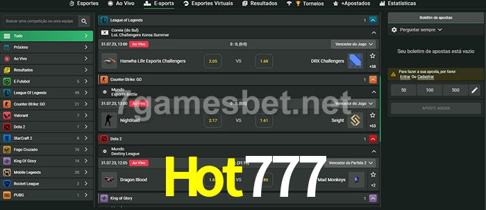 O Hot777 oferece uma grande seleção de opções de apostas em e-sports com probabilidades competitivas